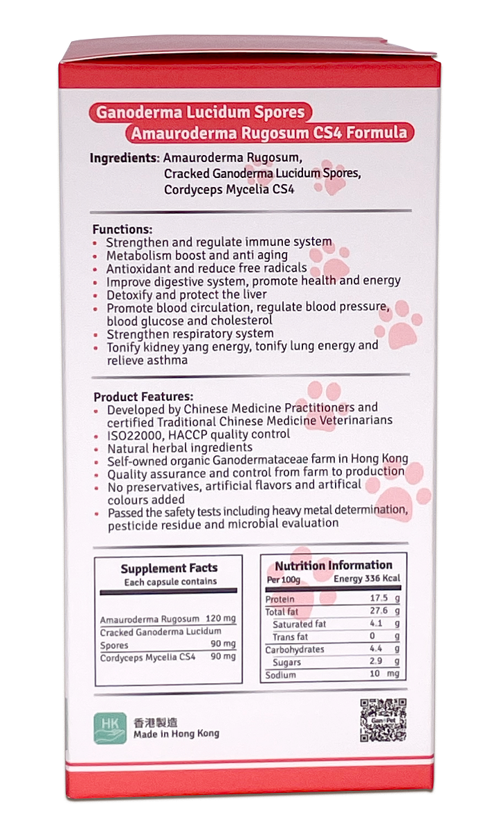 GanoPet - 純赤靈芝破壁孢子,血靈芝,CS4配方(抗衰老)(60粒裝)